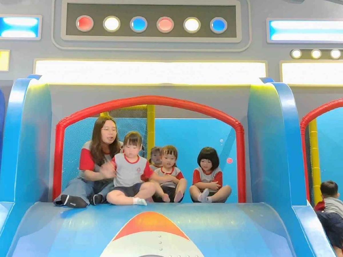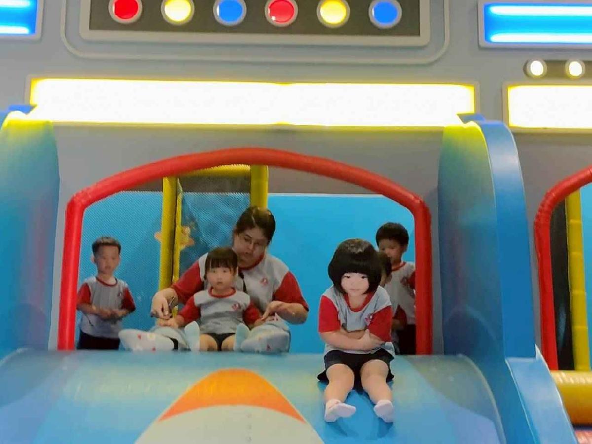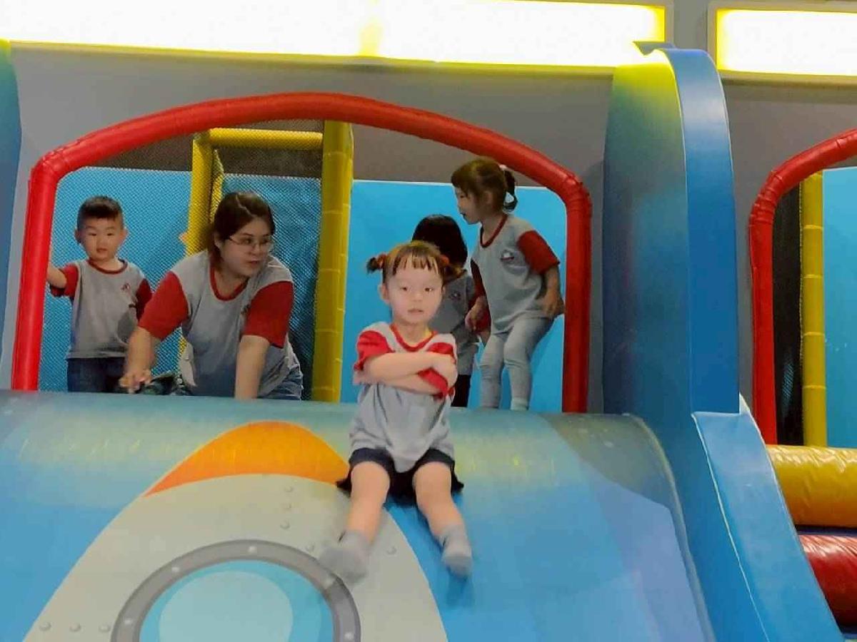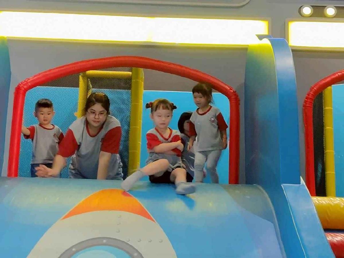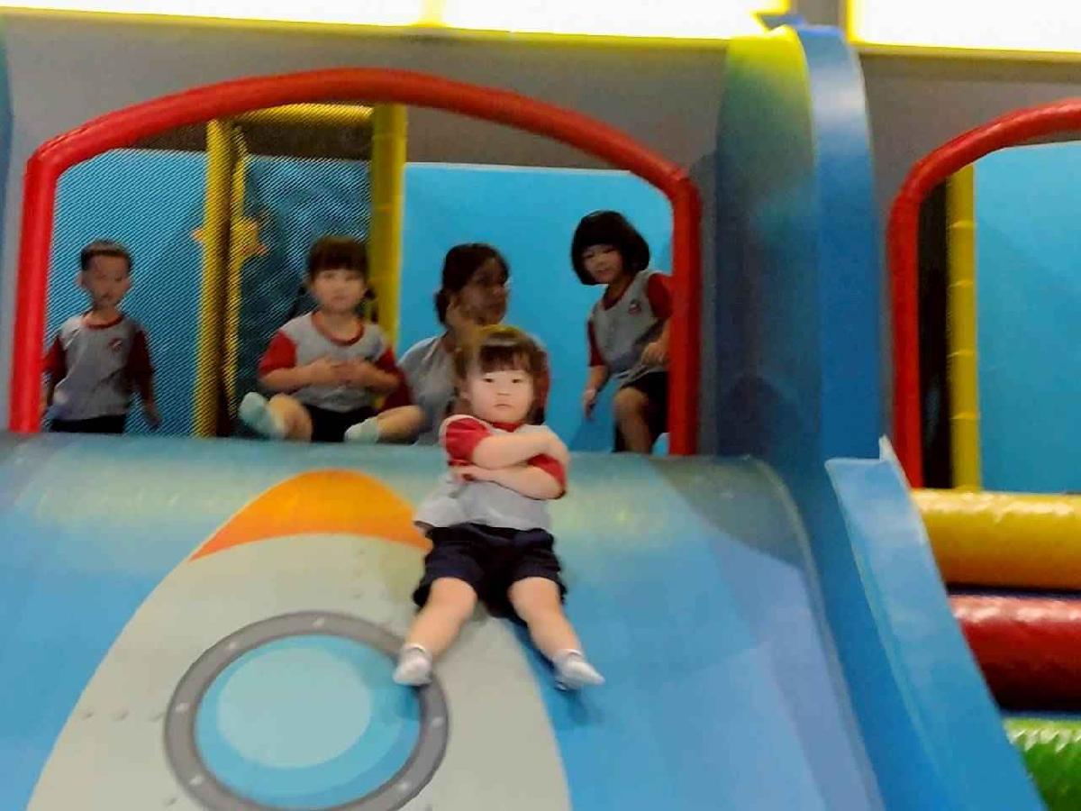 今天是我們小寶貝第一次初體驗坐幼童車到姊妹校騎士堡遊樂園,好開心呀!一進門就看到好大的溜滑梯設施,顏色又亮又漂亮!最喜歡的溜滑梯像在飛一樣。還有好多小朋友一起玩、一起笑,真的好熱鬧。雖然小寶貝有一點點害怕向雲霄飛車速度滑下,但有老師和同學在旁邊陪伴,我就變得勇敢多了!今天真的好好玩,有扮家家酒的遊戲,有球池~有積木等遊樂設施~回程小朋友都嚷嚷希望下次還能再去!