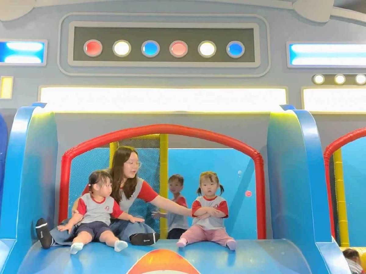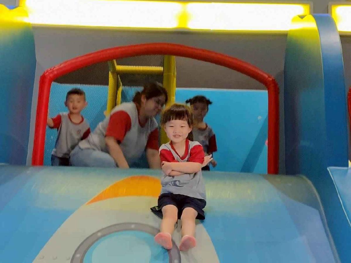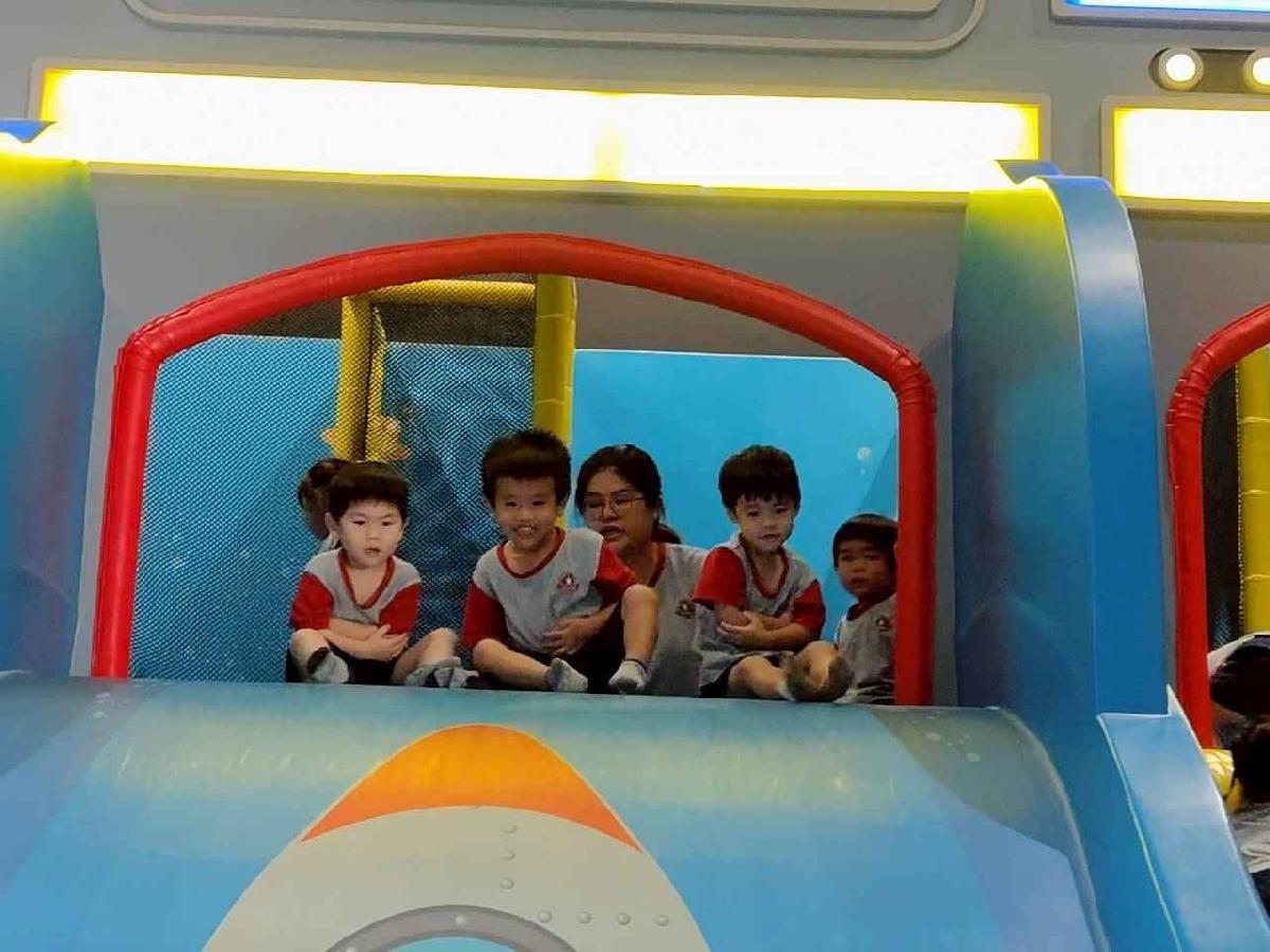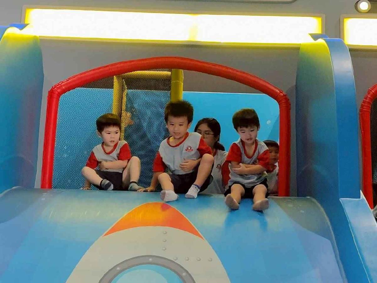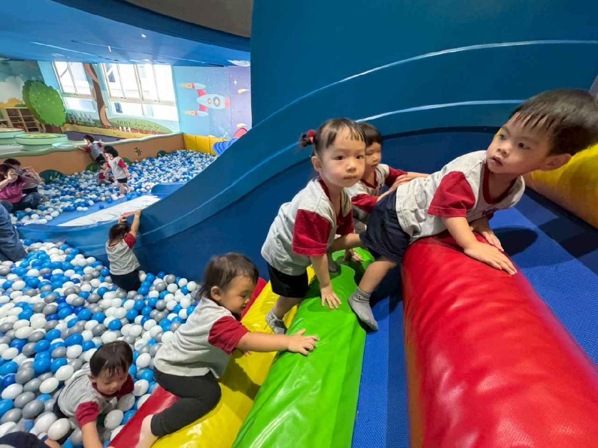 今天是我們小寶貝第一次初體驗坐幼童車到姊妹校騎士堡遊樂園,好開心呀!一進門就看到好大的溜滑梯設施,顏色又亮又漂亮!最喜歡的溜滑梯像在飛一樣。還有好多小朋友一起玩、一起笑,真的好熱鬧。雖然小寶貝有一點點害怕向雲霄飛車速度滑下,但有老師和同學在旁邊陪伴,我就變得勇敢多了!今天真的好好玩,有扮家家酒的遊戲,有球池~有積木等遊樂設施~回程小朋友都嚷嚷希望下次還能再去!