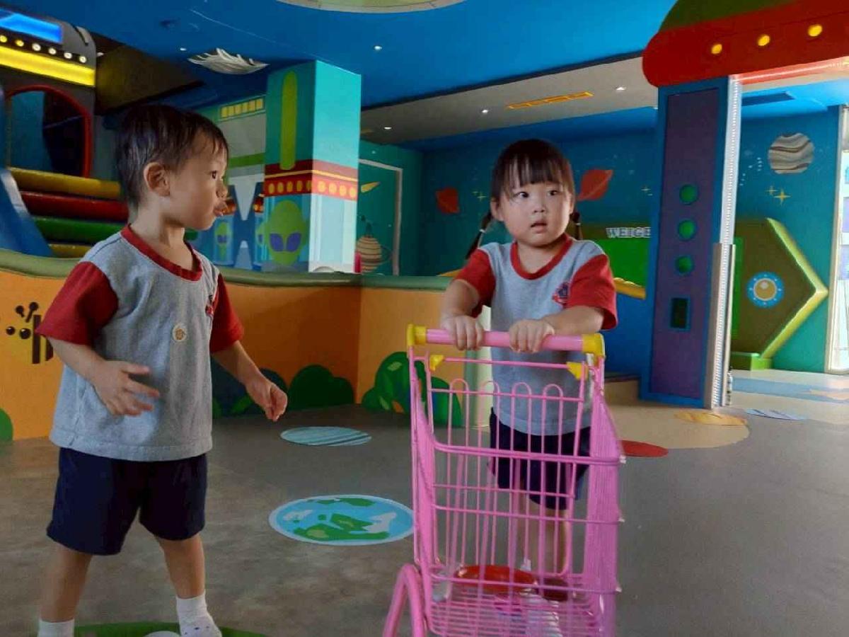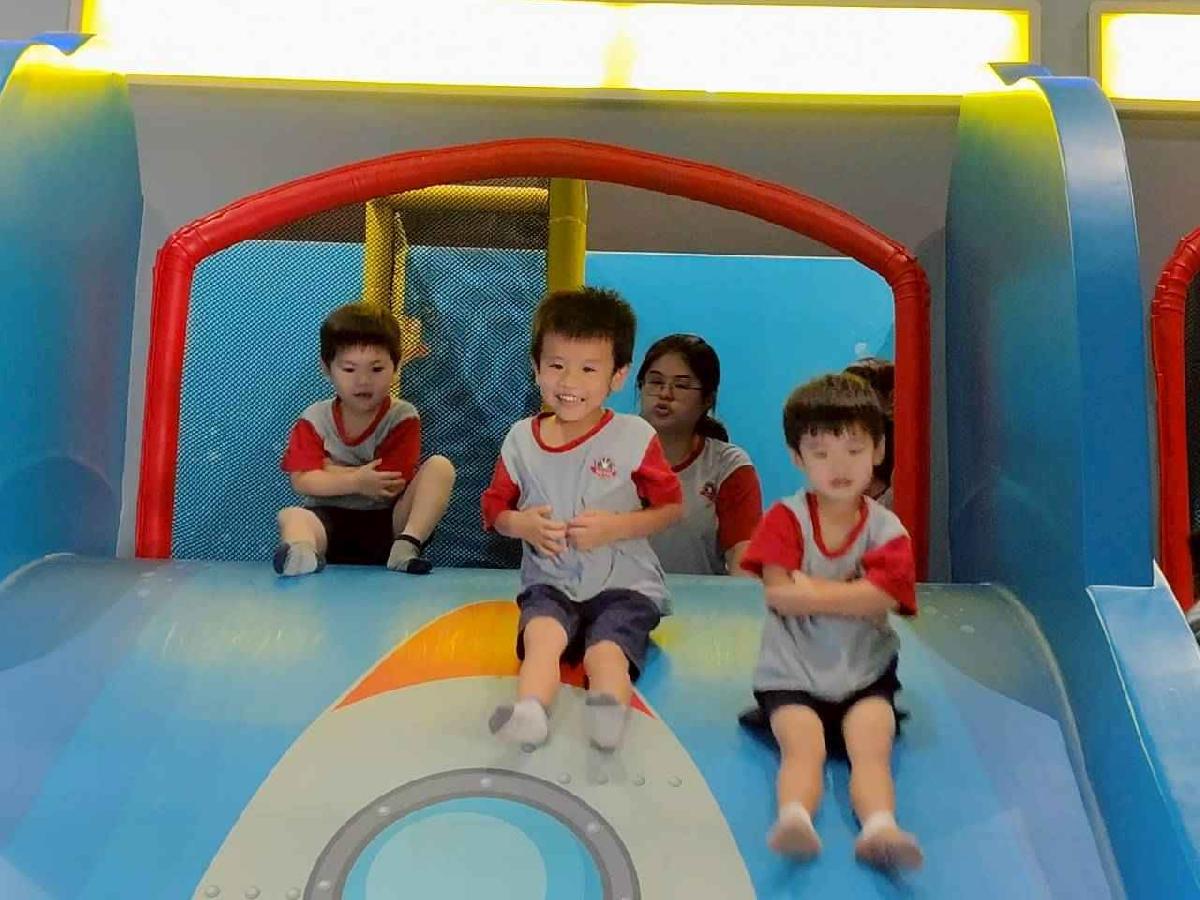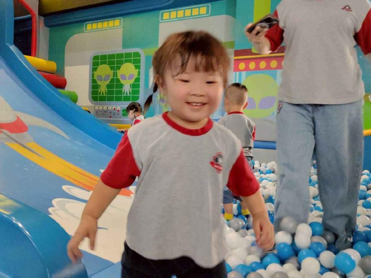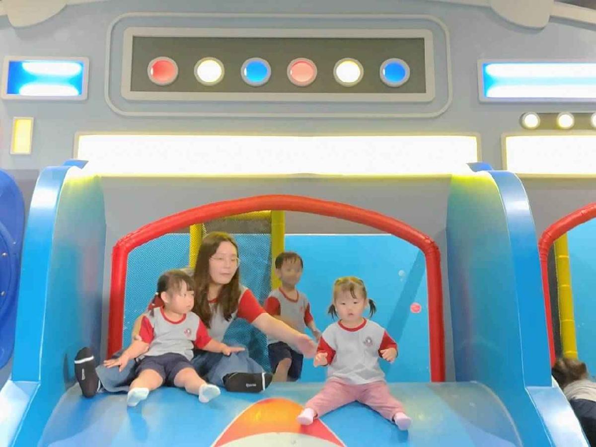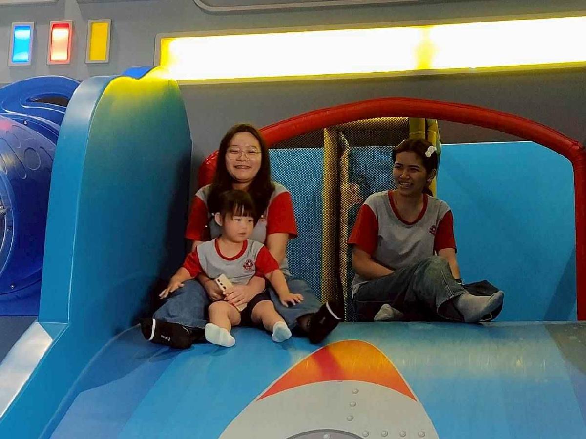 今天是我們小寶貝第一次初體驗坐幼童車到姊妹校騎士堡遊樂園,好開心呀!一進門就看到好大的溜滑梯設施,顏色又亮又漂亮!最喜歡的溜滑梯像在飛一樣。還有好多小朋友一起玩、一起笑,真的好熱鬧。雖然小寶貝有一點點害怕向雲霄飛車速度滑下,但有老師和同學在旁邊陪伴,我就變得勇敢多了!今天真的好好玩,有扮家家酒的遊戲,有球池~有積木等遊樂設施~回程小朋友都嚷嚷希望下次還能再去!