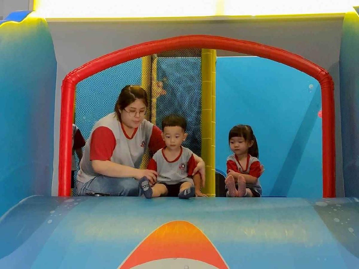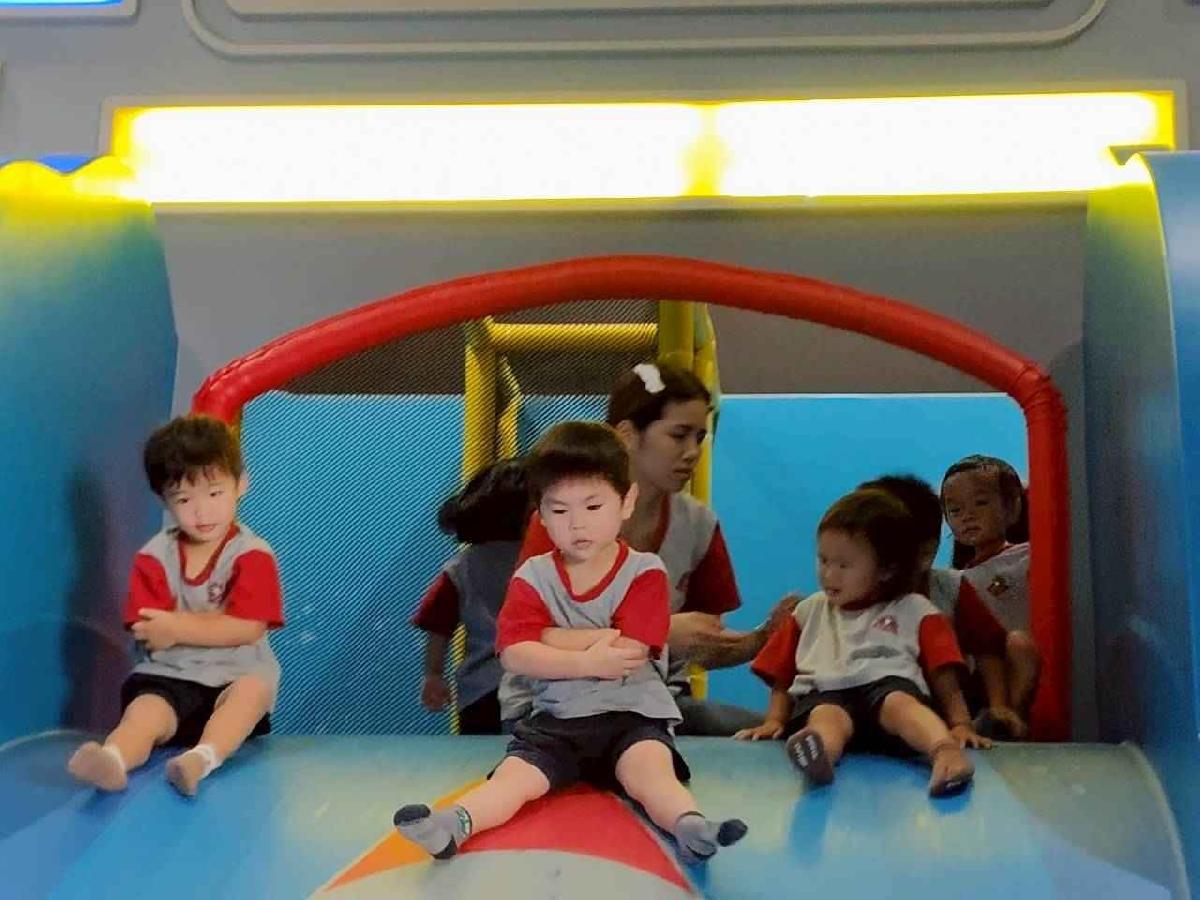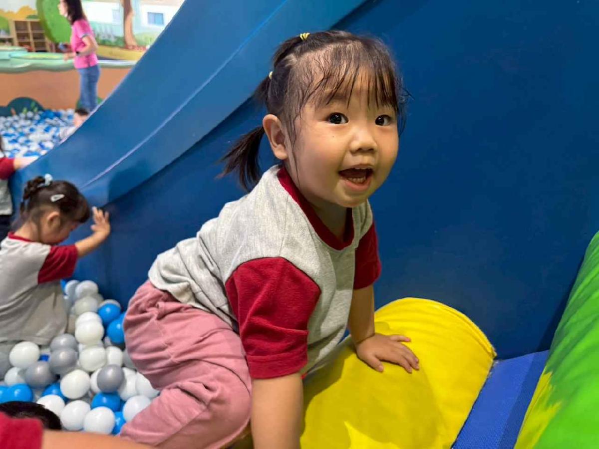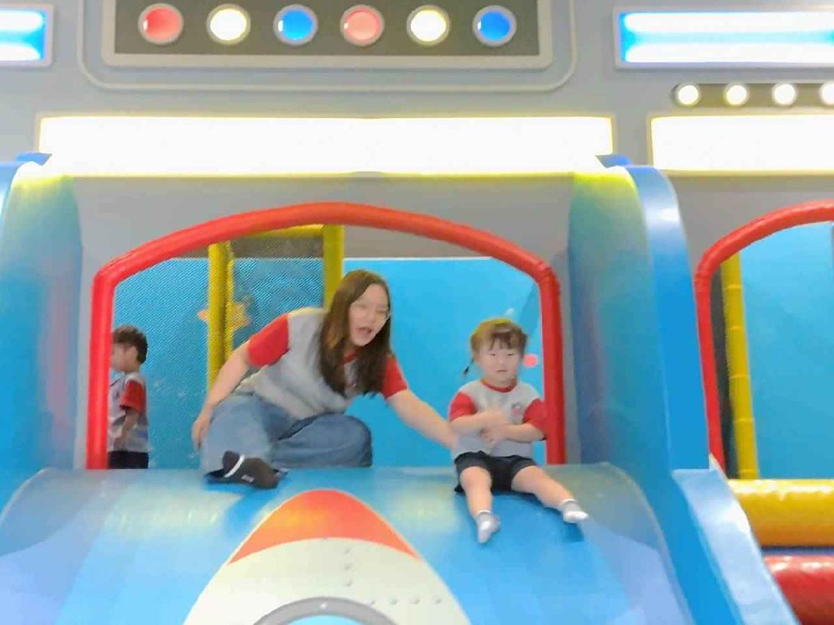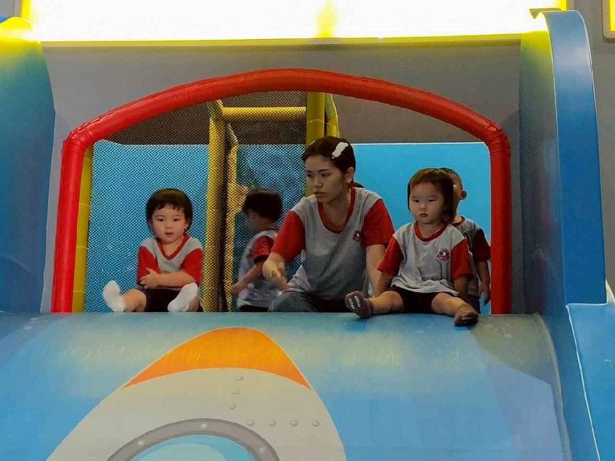 今天是我們小寶貝第一次初體驗坐幼童車到姊妹校騎士堡遊樂園,好開心呀!一進門就看到好大的溜滑梯設施,顏色又亮又漂亮!最喜歡的溜滑梯像在飛一樣。還有好多小朋友一起玩、一起笑,真的好熱鬧。雖然小寶貝有一點點害怕向雲霄飛車速度滑下,但有老師和同學在旁邊陪伴,我就變得勇敢多了!今天真的好好玩,有扮家家酒的遊戲,有球池~有積木等遊樂設施~回程小朋友都嚷嚷希望下次還能再去!