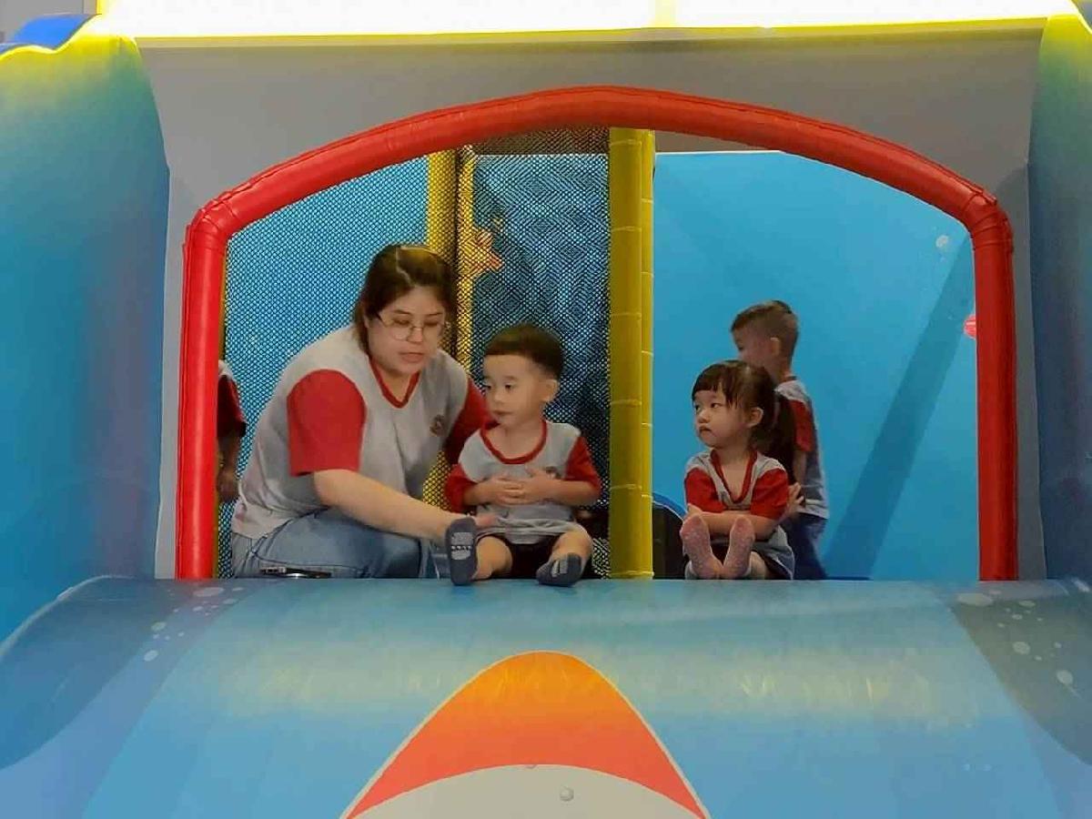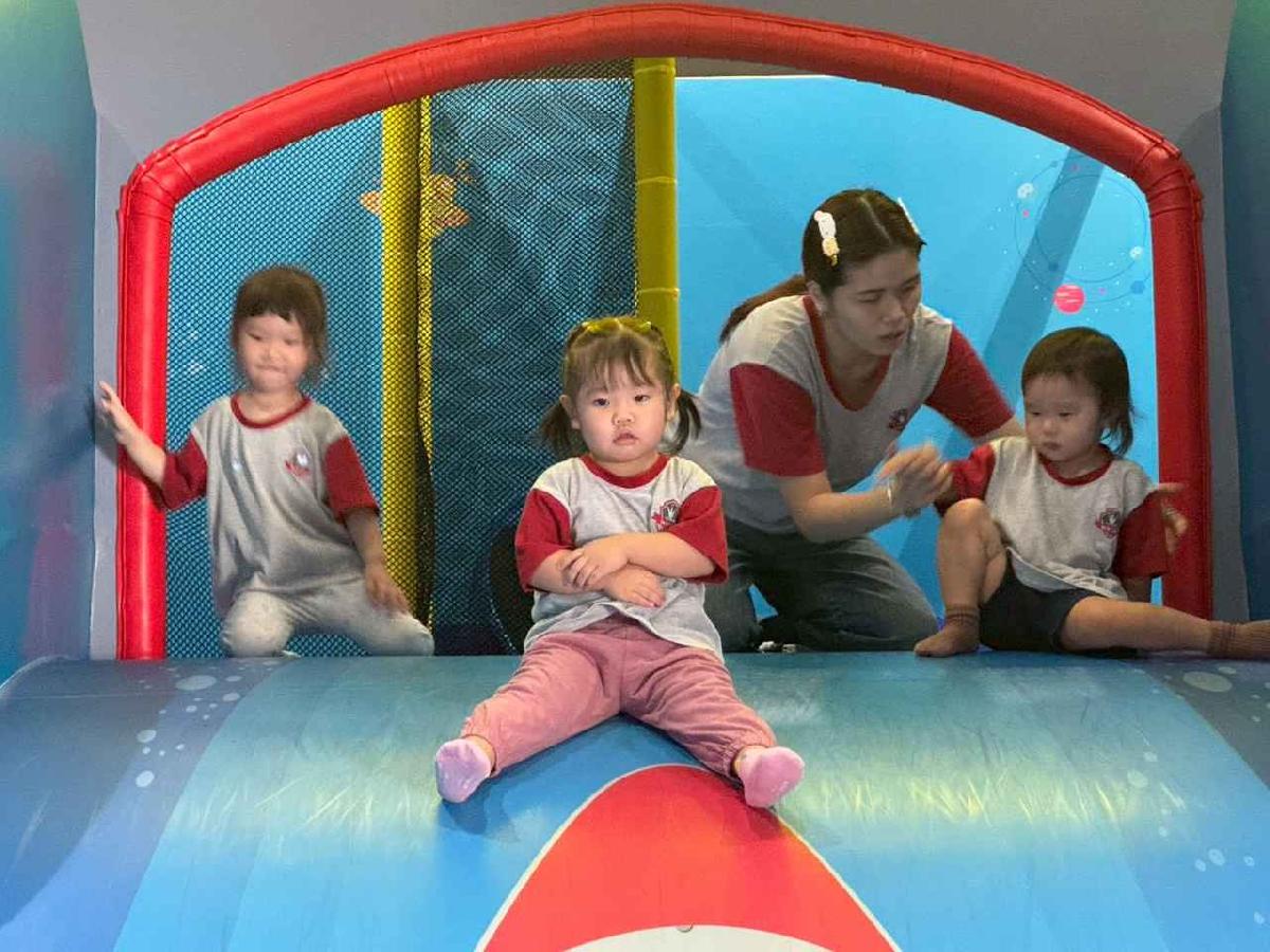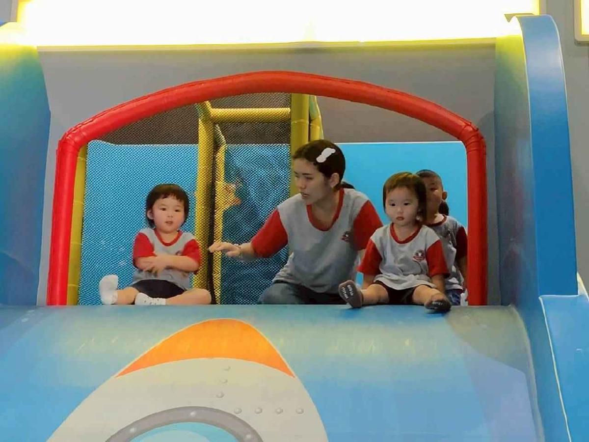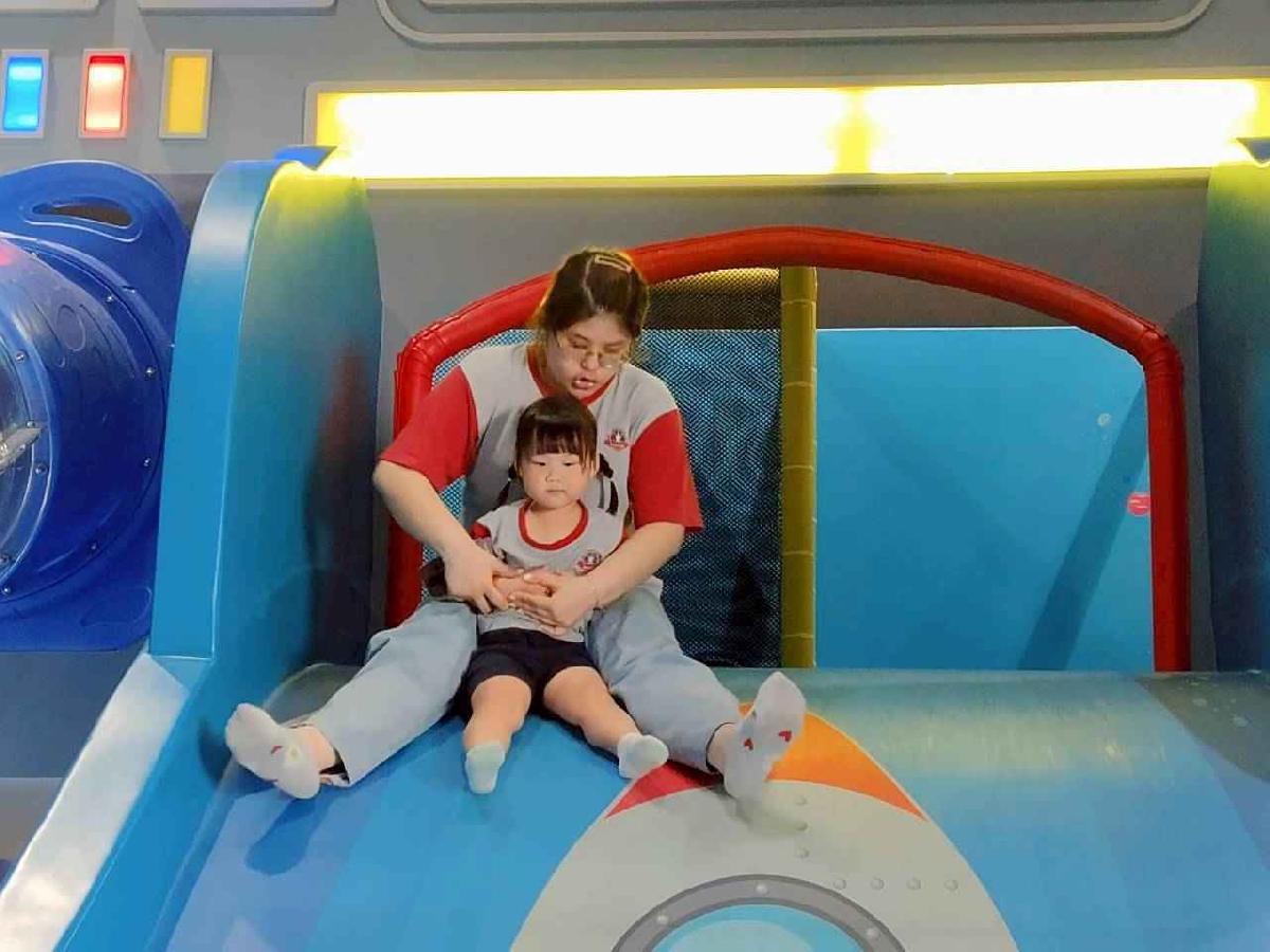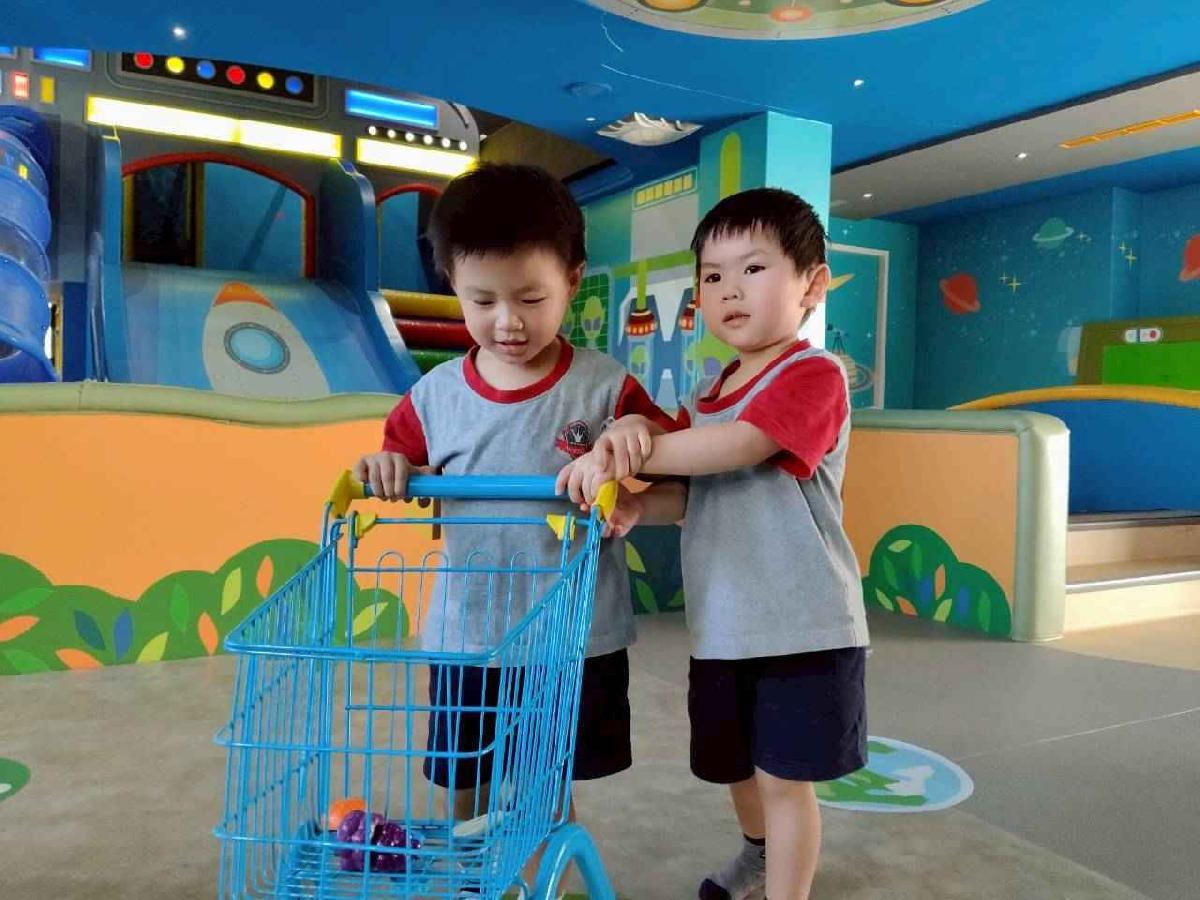 今天是我們小寶貝第一次初體驗坐幼童車到姊妹校騎士堡遊樂園,好開心呀!一進門就看到好大的溜滑梯設施,顏色又亮又漂亮!最喜歡的溜滑梯像在飛一樣。還有好多小朋友一起玩、一起笑,真的好熱鬧。雖然小寶貝有一點點害怕向雲霄飛車速度滑下,但有老師和同學在旁邊陪伴,我就變得勇敢多了!今天真的好好玩,有扮家家酒的遊戲,有球池~有積木等遊樂設施~回程小朋友都嚷嚷希望下次還能再去!