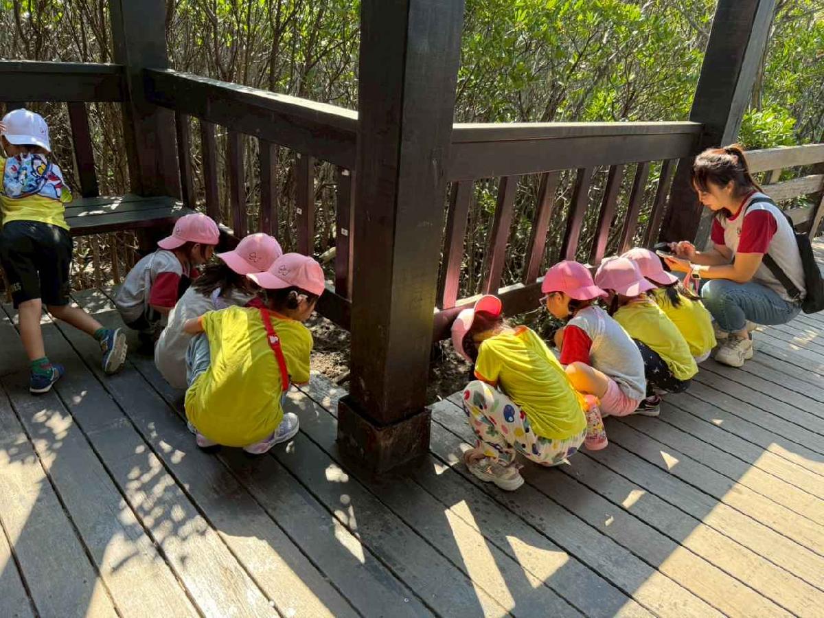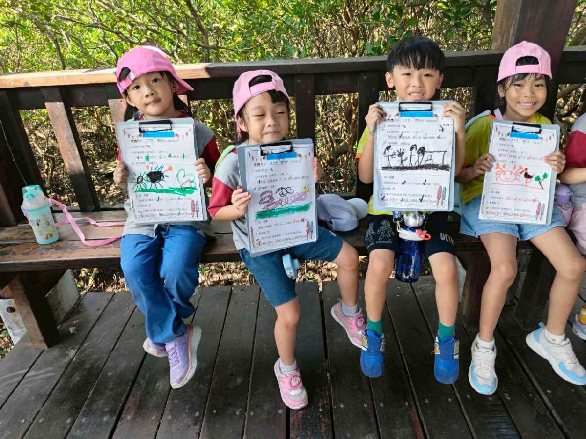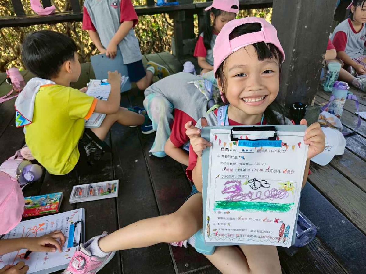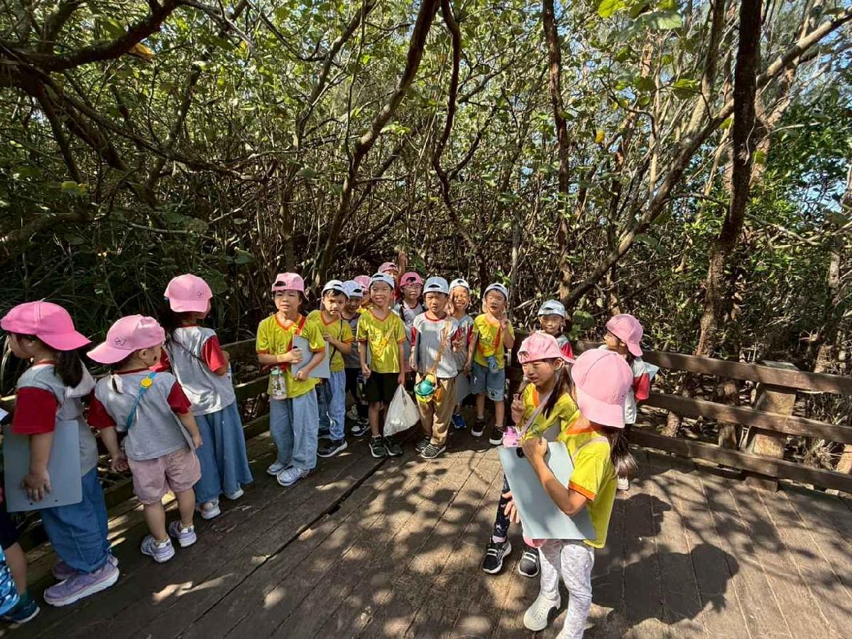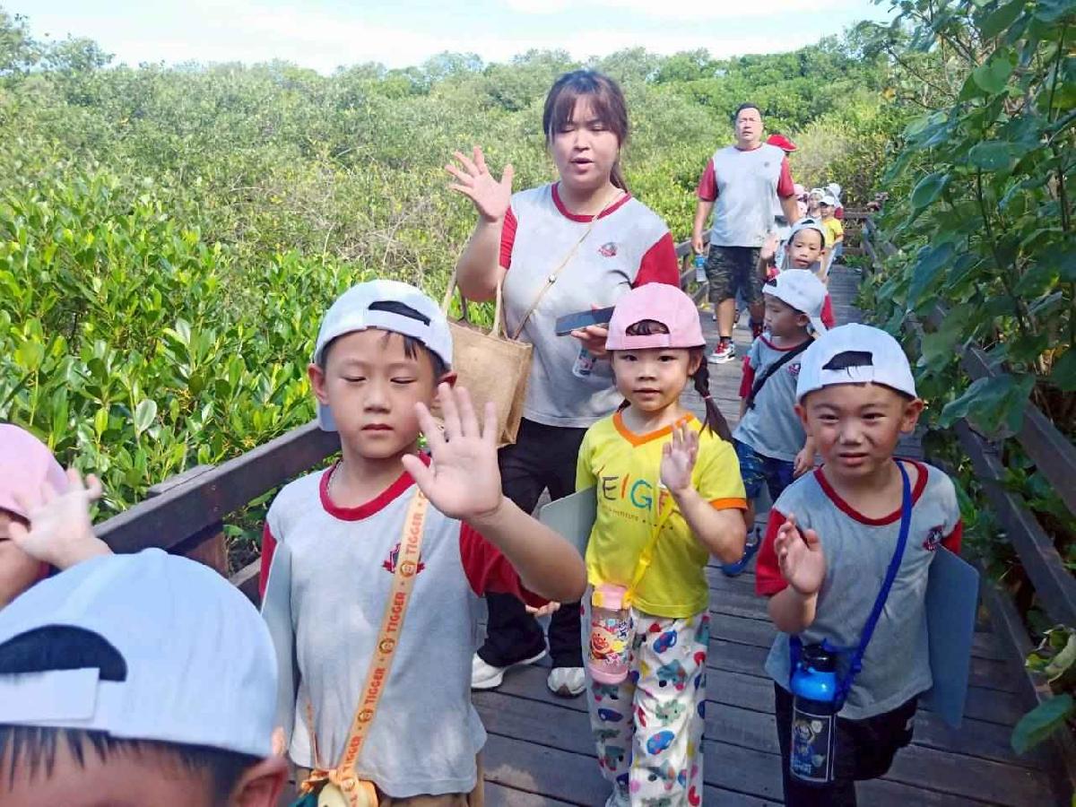 配合主題,今天帶寶貝到新豐紅樹林去實際觀察紅樹林的生態,觀察在紅樹林裡面有什麼?有招潮蟹、彈塗魚還有今天的主角紅樹林/水筆仔!!引導寶貝思考,紅樹林在這生態裡面扮演什麼樣的角色,除了有保護小動物還能擋住大風浪,最後就是能幫助海水變乾淨,是不是很神奇很厲害呢!!!紅樹林見習趣 收穫良多喔