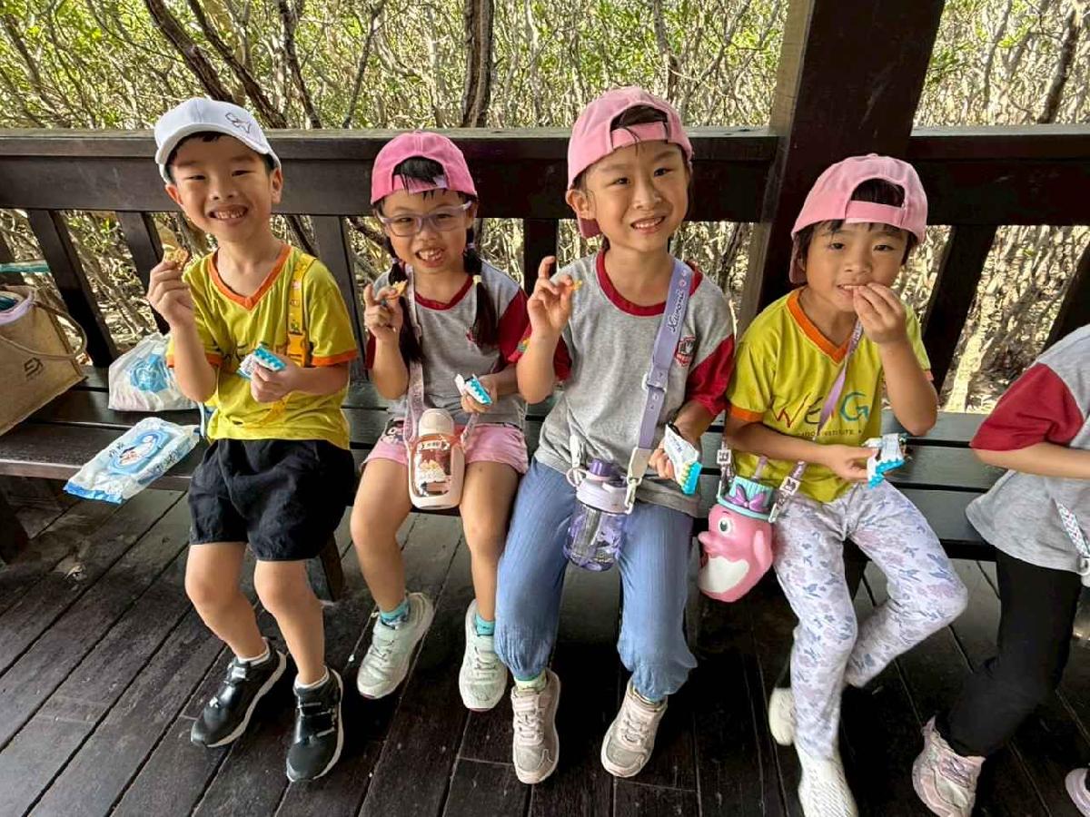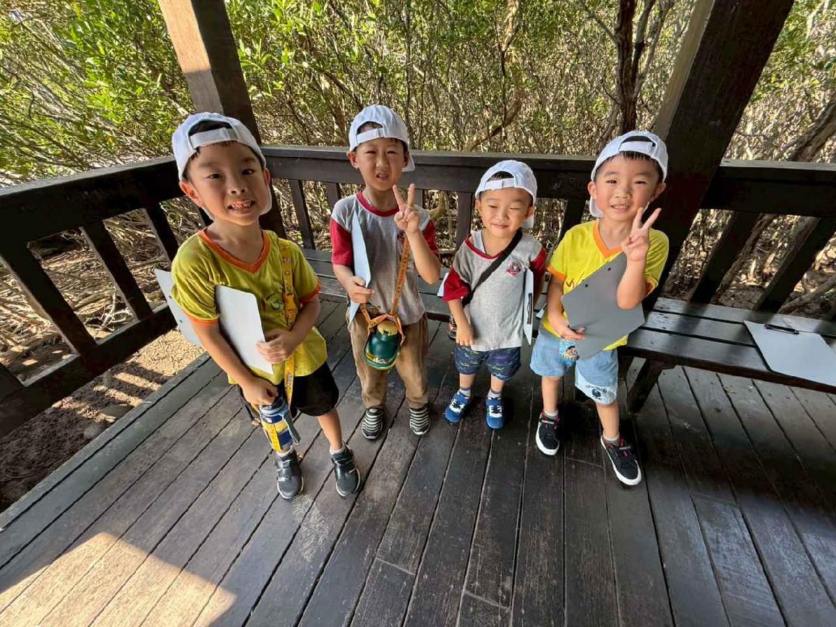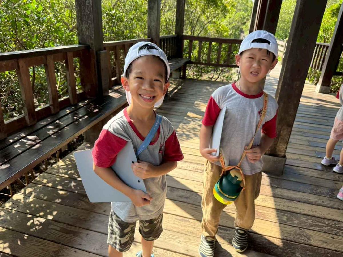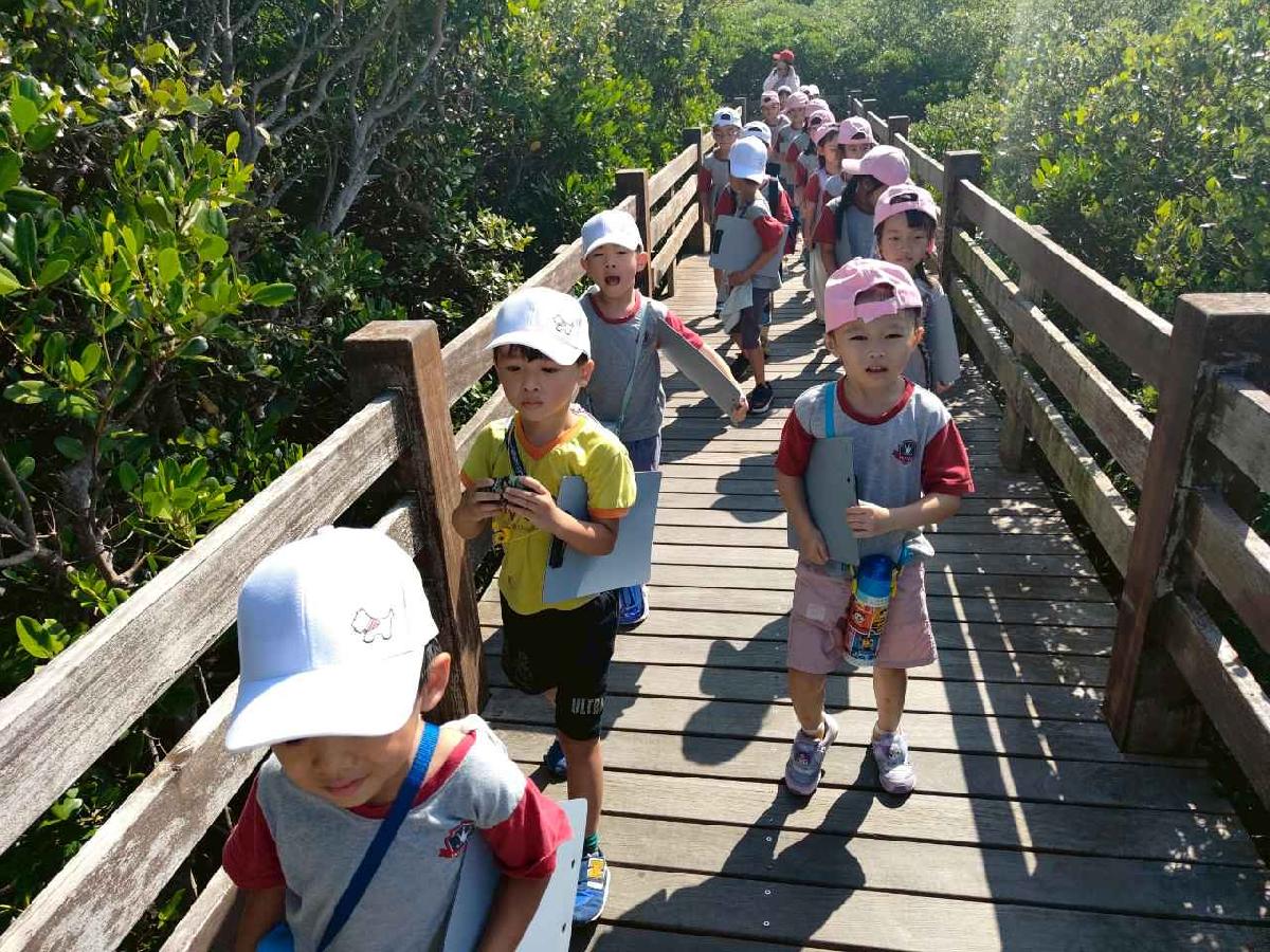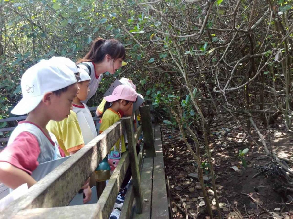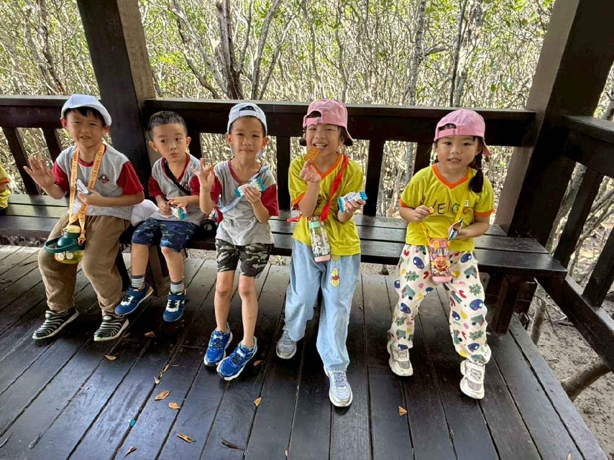配合主題,今天帶寶貝到新豐紅樹林去實際觀察紅樹林的生態,觀察在紅樹林裡面有什麼?有招潮蟹、彈塗魚還有今天的主角紅樹林/水筆仔!!引導寶貝思考,紅樹林在這生態裡面扮演什麼樣的角色,除了有保護小動物還能擋住大風浪,最後就是能幫助海水變乾淨,是不是很神奇很厲害呢!!!紅樹林見習趣 收穫良多喔