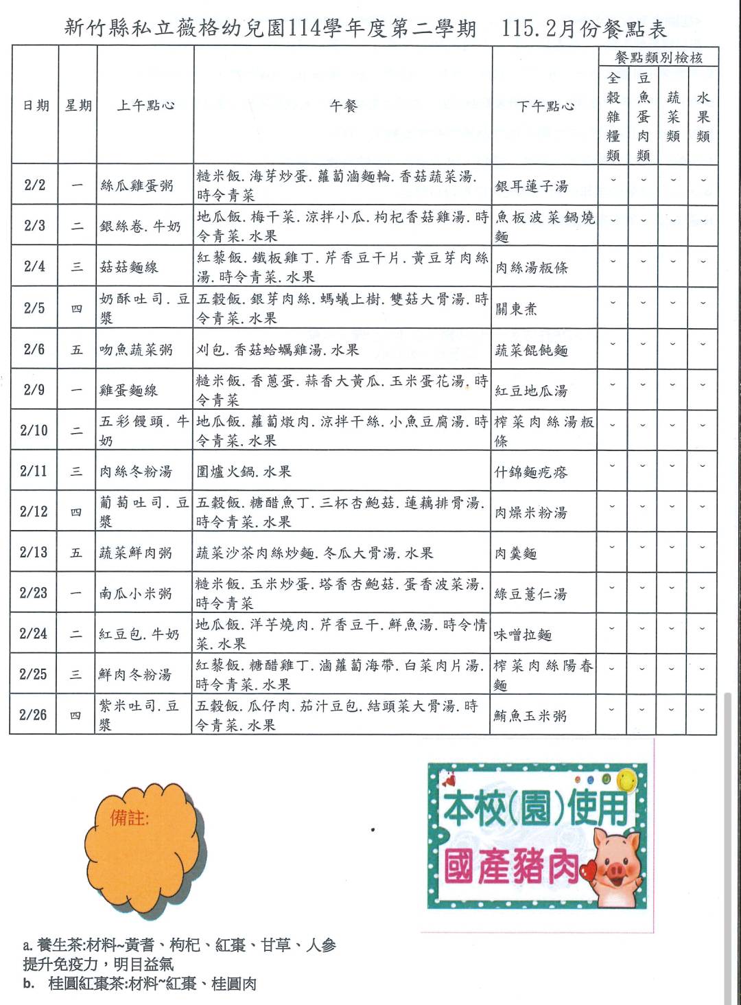 115年02月份營養餐點