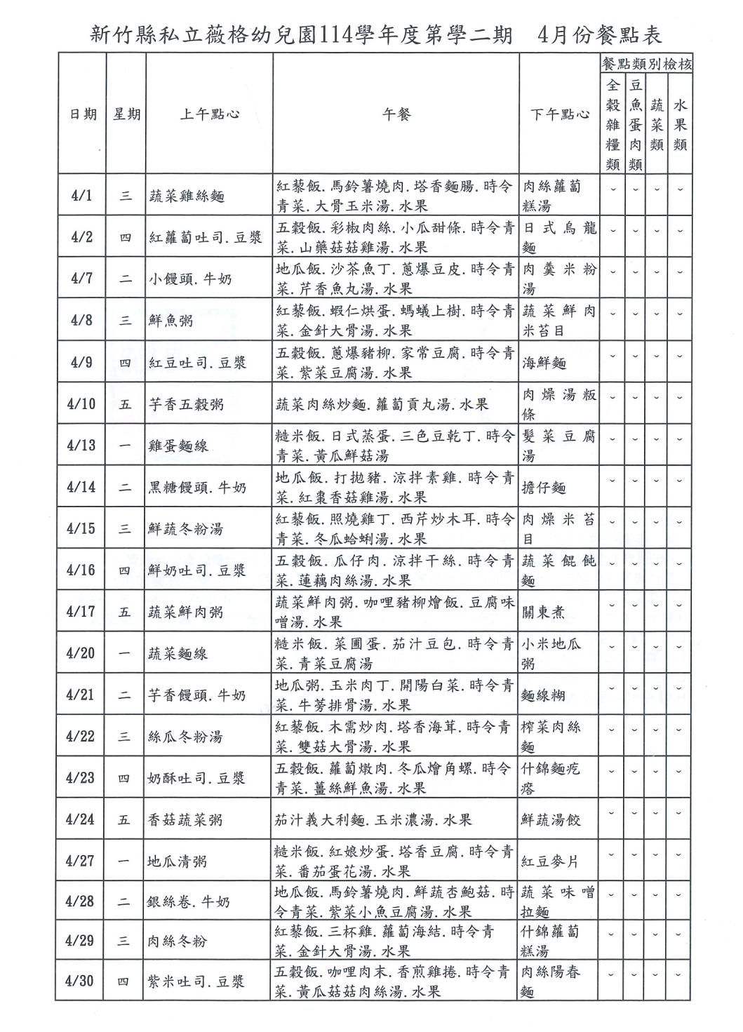 115年04月份餐點表